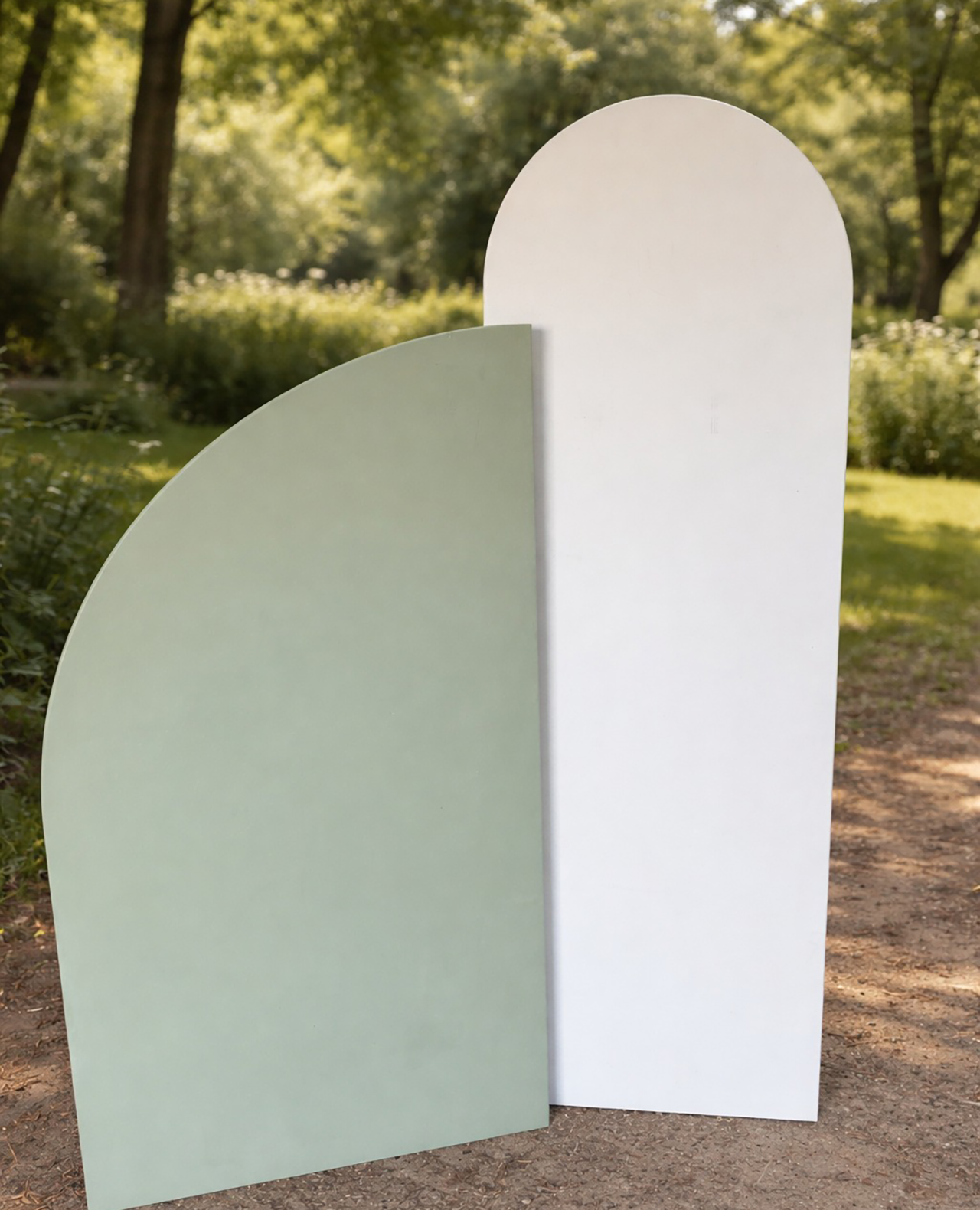 Créez une ambiance douce, moderne et organique avec ce duo de backdrops aux lignes arrondies et aux teintes naturelles. Pensés pour s’intégrer harmonieusement dans des décors extérieurs comme intérieurs, ces panneaux apportent une touche élégante